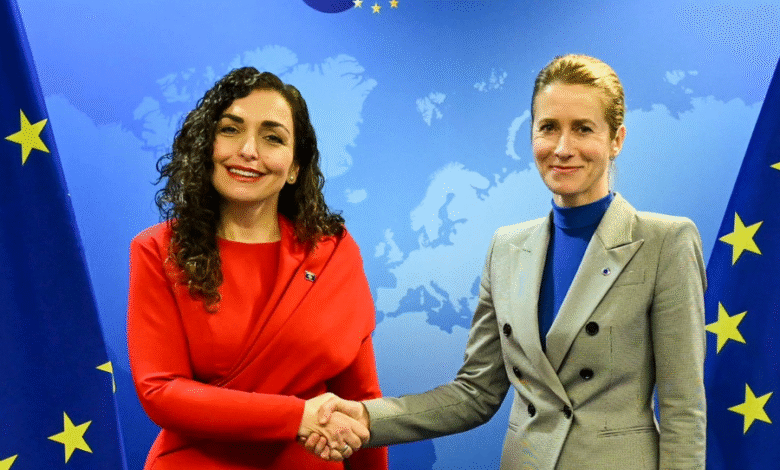 Presidentja Osmani ka shkruar: “Në Bruksel, e falënderova Përfaqësuesen e Lartë Kaja Kallas për mbështetjen e saj të vazhdueshme për integrimin evropian të Kosovës.