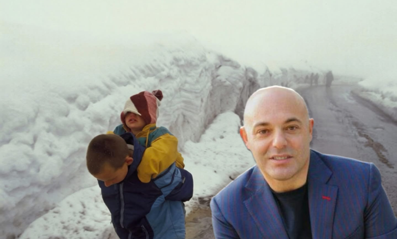 Në foto, sipas përshkrimit të tij, shihet një djalë i vogël që mban në shpinë vëllain e tij, teksa largohen nga Kosova drejt Malit të Zi për t’i shpëtuar luftës.