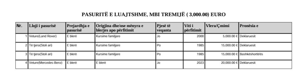 Ndërsa te pasuria e lujtshme, Haliti ka deklaruar 55 mijë euro, përfshirë 15 mijë euro ari.