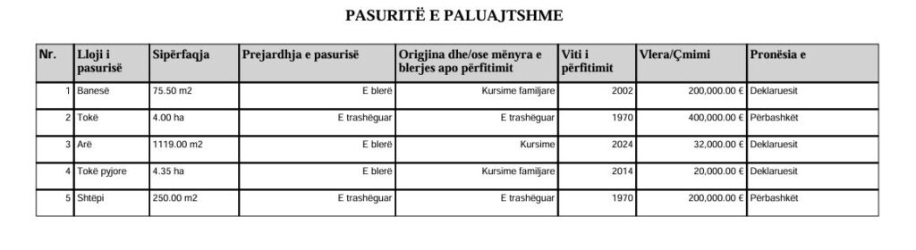Ai ka deklaruar vullnetarisht një pasuri që shkon pak mbi 1 milion euro.