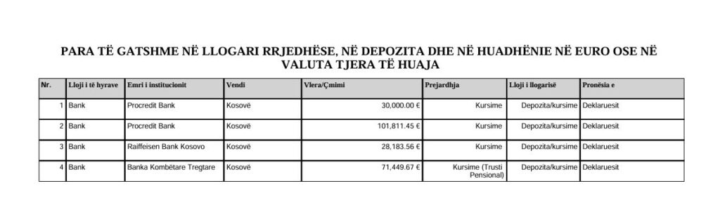Ndërsa Haliti ka edhe mbi 231 mijë euro kursime.
