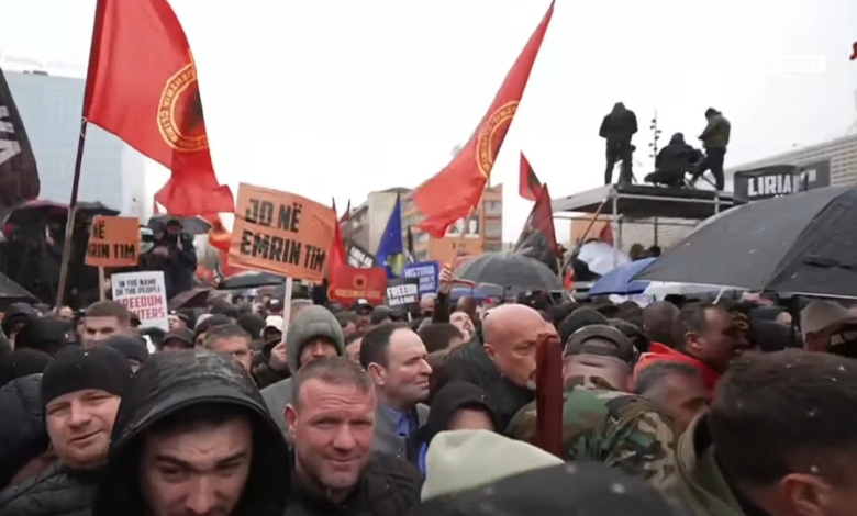 Me moton “Drejtësi, jo politikë”, sheshi i Prishtinës është mbushur plot nga qytetarë të shumtë.