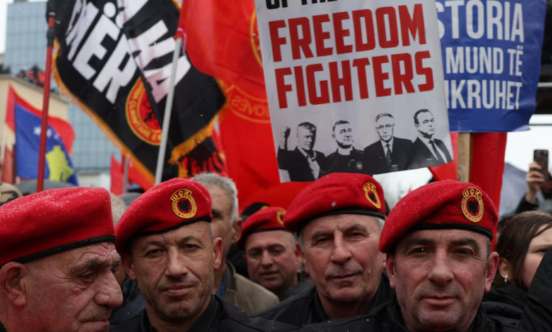 PRISHTINË, 17 shkurt (Reuters) – Mijëra njerëz u mblodhën të martën në Prishtinë duke mbajtur pankarta të Ushtrisë Çlirimtare të Kosovës (UÇK) për të protestuar kundër gjykimit të ish-udhëheqësve të saj, përfshirë një ish-president, të akuzuar për krime lufte gjatë luftës së viteve 1998–99 për pavarësi.